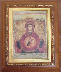 (1371) COD:IC-206 Urna a quadro con icona religiosa, foglia in oro zecchino e cornice in legno massello. Mis. cm. 42x52x7,5h. - 5,5lt.