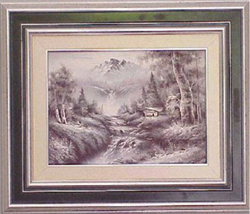 (2027) COD:PA-523 Urna a quadro con paesaggio e passpartout. Mis. cm. 42x52x7,5h. - 5,5lt.