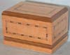 (438) COD:T-INTARSIO Urna in legno con disegno intarsio. Mis. cm. 32x23x21,5h. Disponibile nelle versioni: rovere – mogano – beli – ebiara