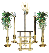 Completo trittico con colorazione marmoriz. champagne - accessori in ottone lucido. Possibilità di realizzare croce e candelieri a batteria