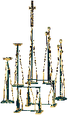 Completo in ottone, tubo stellato con colorazione verde satinato e ottone lucido. Possibilità di realizzare croce e candelieri a batteria
